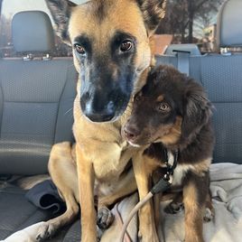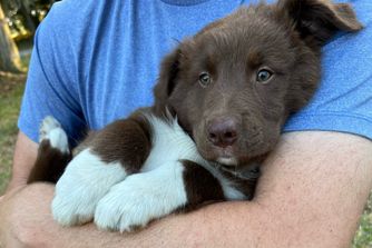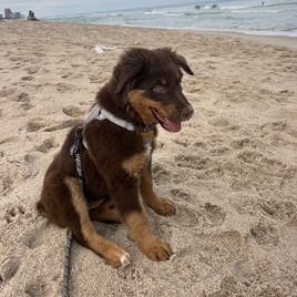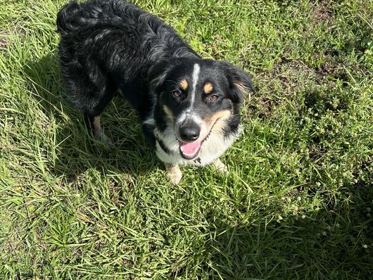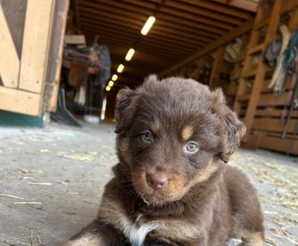 Macie is a gentle, loving girl. She is very loyal and protective of her people. She is great with kids and gentle with all animals. She’s a high Velcro Aussie with an independent streak every now and then. She loves cuddles, swimming, and licking babies.