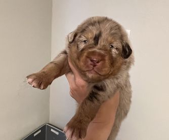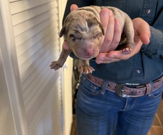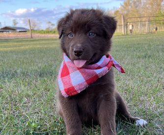 Our puppies include black, red merle, blue merle, and red. Colors will vary depending on the parent dogs.