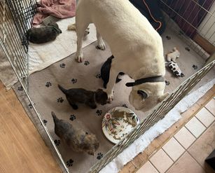 Our puppies include brindle, cream brindle, wheaten, black brindle, and black. Colors will vary depending on the parent dogs.