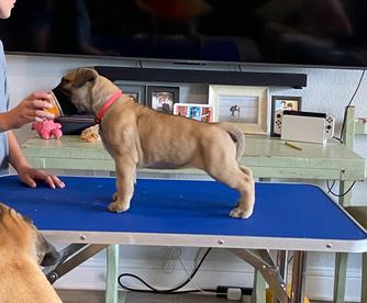 Her sire and dam are both grand champions, and includes 3 grand champions and 10 additional champions in her pedigree. Pudding is a fun, sassy girl who never met a stranger. She enjoys chasing our rambunctious kids and taking long naps after. She loves being in the confirmation ring. Her favorite thing, though, is treats!