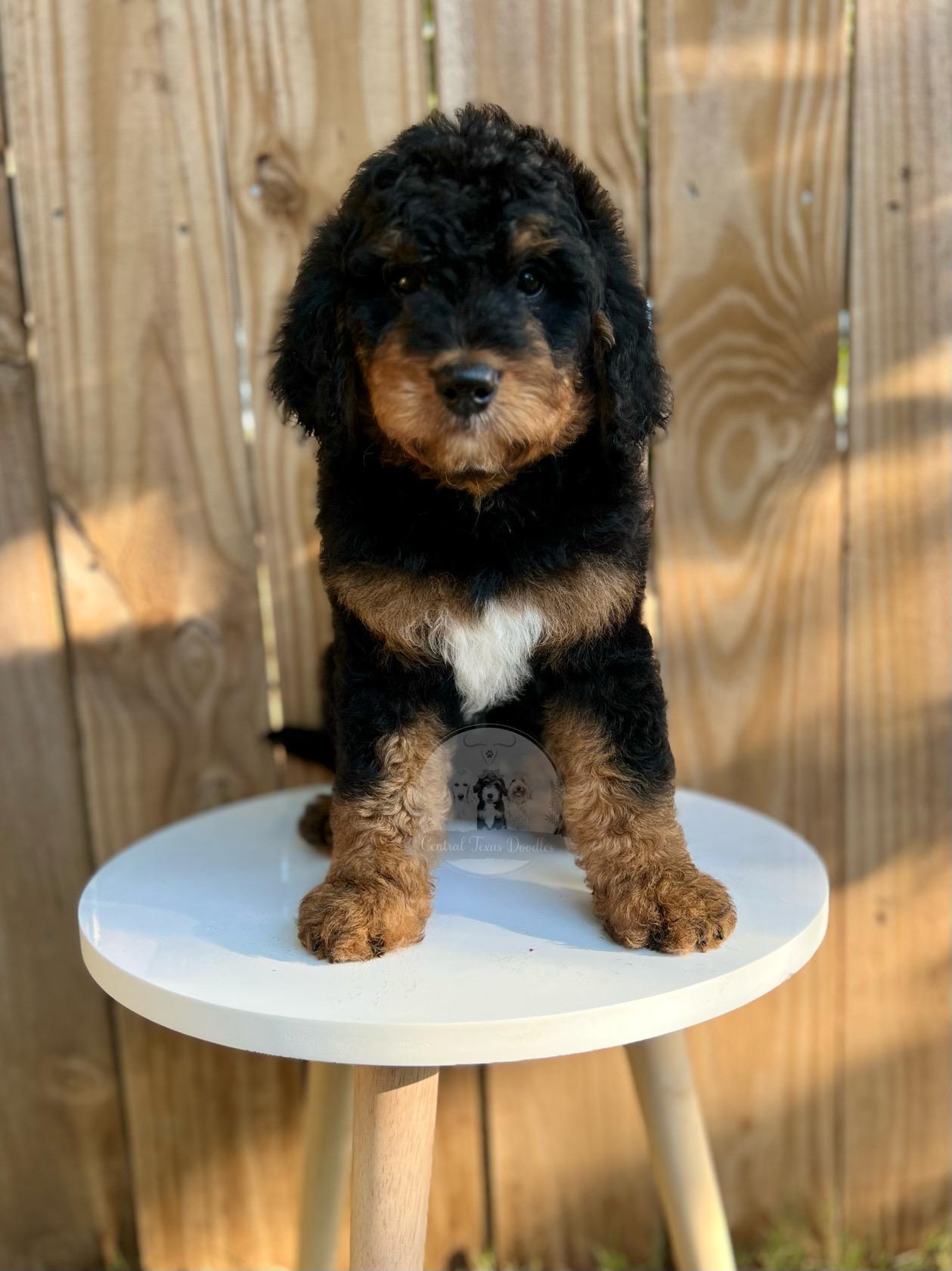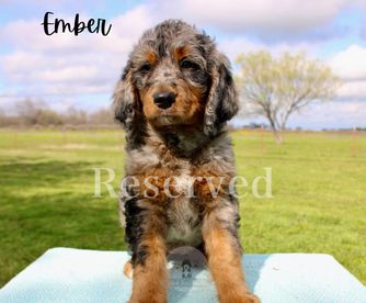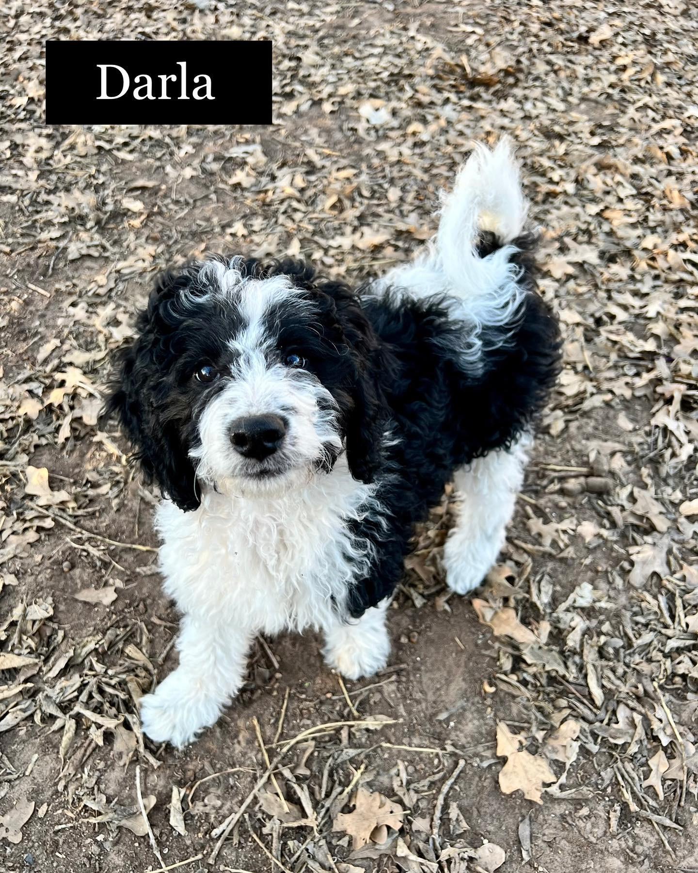 Bernedoodle puppies include black and white, tri-color, phantom, and merle. Goldendoodle puppies include cream, apricot, red, and parti. Colors will vary depending on the parent dogs.