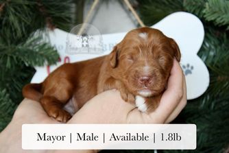 Bernedoodle puppies include mini and medium sizes. Goldendoodle puppies include petite, miniature, and medium sizes. Sizes will vary depending on the parent dogs.