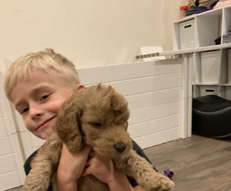 Archie is a male Goldendoodle. Carefully selected as a great representative of his breed, Paige decided to make him part of their program. Paige has passed Good Dog’s screening process, which involved a review of their breeding practices, environment, and the mental and physical health of their dogs.