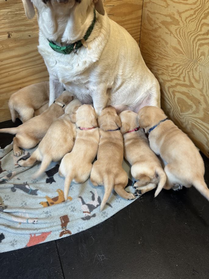 Our puppies include black, chocolate, and yellow. Colors will vary depending on the parent dogs.