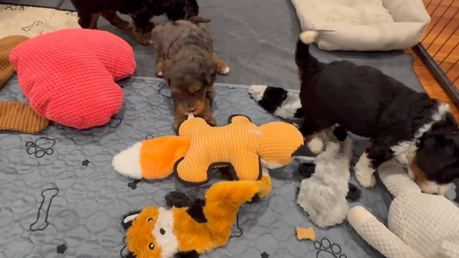 Playtime for Birdie’s babies 🐾 5 weeks old and thriving!