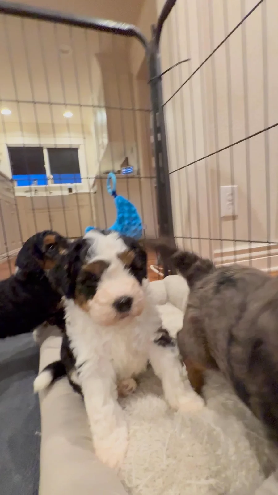 “Our Bernedoodles can be matched as soon as buyers are screened and approved. Due the markings and color variations we understand buyers have specific requests for their bernedoodle puppies beyond temperament. Our GoldenDoodle puppies are matched with approved buyers at our 7 week meet and greet. ”
