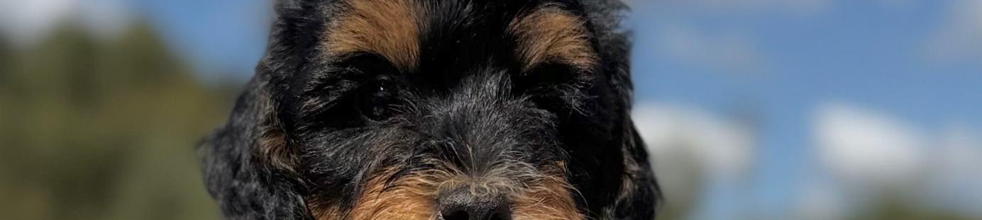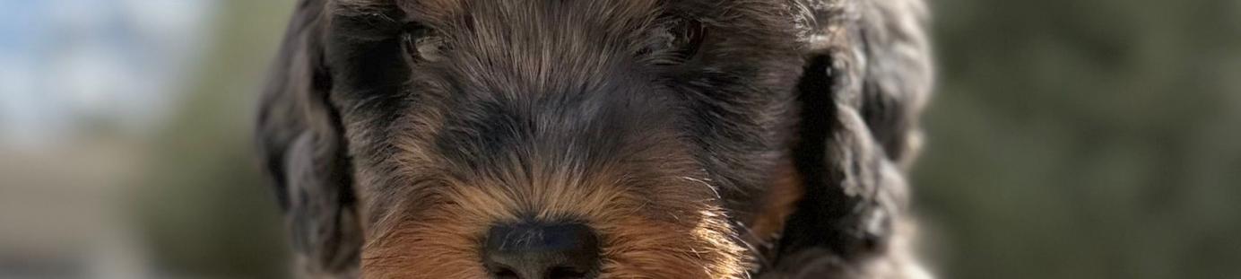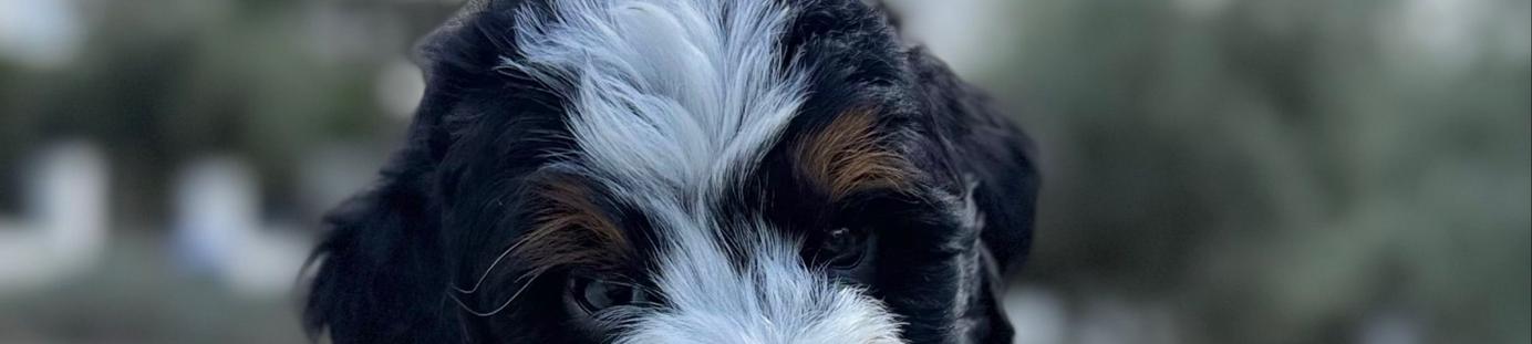 Our Goldendoodle puppies include cream, apricot, red, phantom, merle, and parti. Bernedoodle puppies include sable, black and white, tri-color, and phantom. Colors will vary depending on the parent dogs.