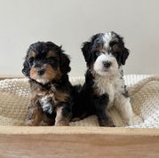 Our Bernedoodle puppies include sable, black and white, tri-color, and phantom. Goldendoodle puppies include cream, apricot, red, phantom, merle, and parti. Colors will vary depending on the parent dogs.