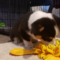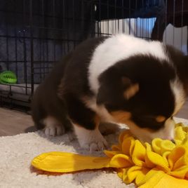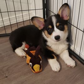 Jersey is a female Pembroke Welsh Corgi. Carefully selected as a great representative of her breed, Trish decided to make her part of their program. Trish has passed Good Dog’s screening process, which involved a review of their breeding practices, environment, and the mental and physical health of their dogs.