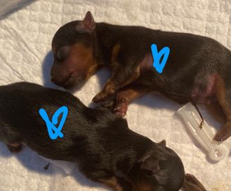 “The price includes Docked Tails first round of vaccines and Going home puppy Package which includes a toy a blanket with moms scent a small bag of dog food and a guide on your puppy and a surprise gift. Deposit is based on total price for puppy. We request half of the total puppy price unless other arrangements have been made with our staff.”