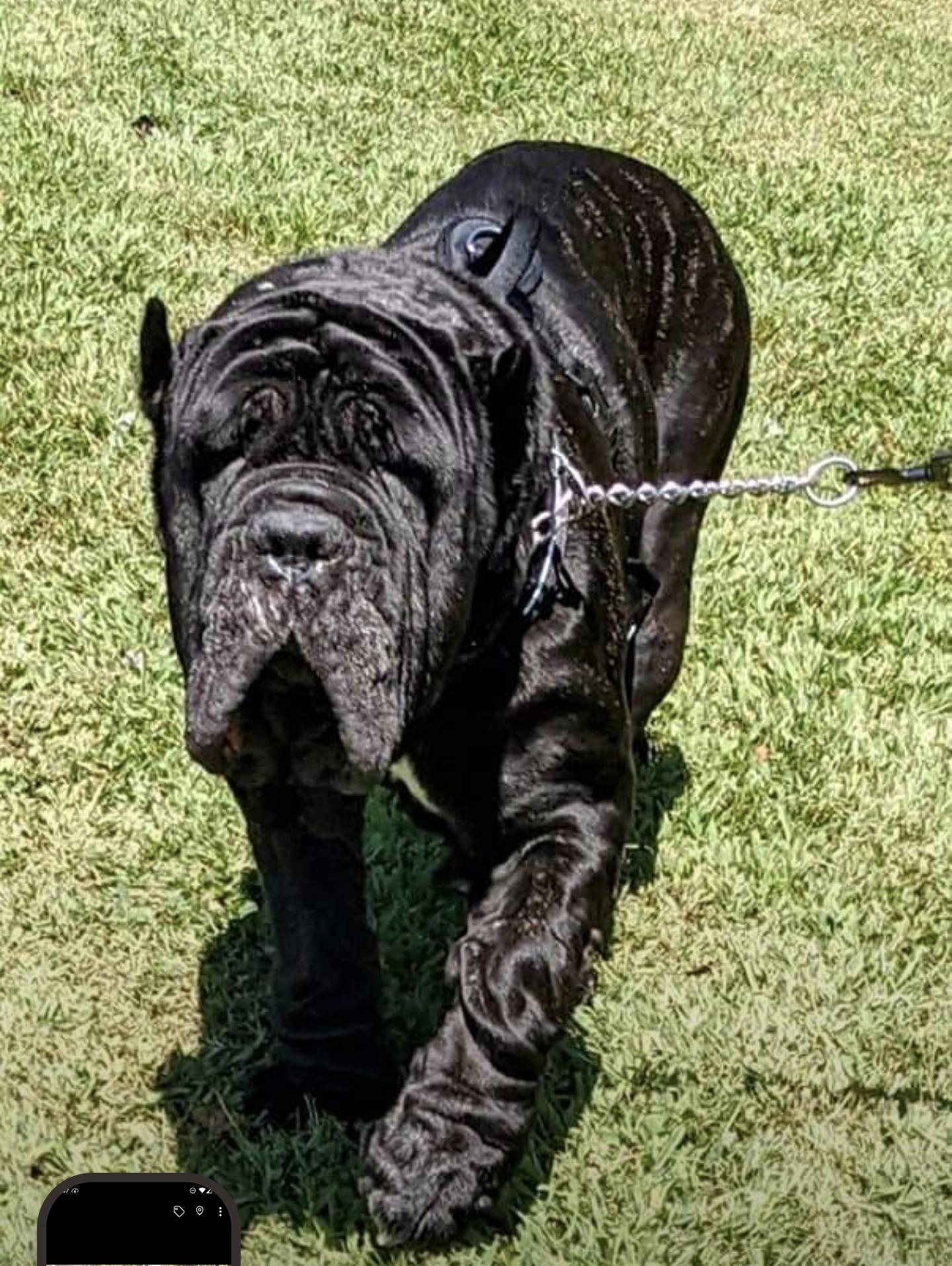 Quarterback is a male Neapolitan Mastiff. Carefully selected as a great representative of his breed, Anne decided to make him part of their program. Anne has passed Good Dog’s screening process, which involved a review of their breeding practices, environment, and the mental and physical health of their dogs.