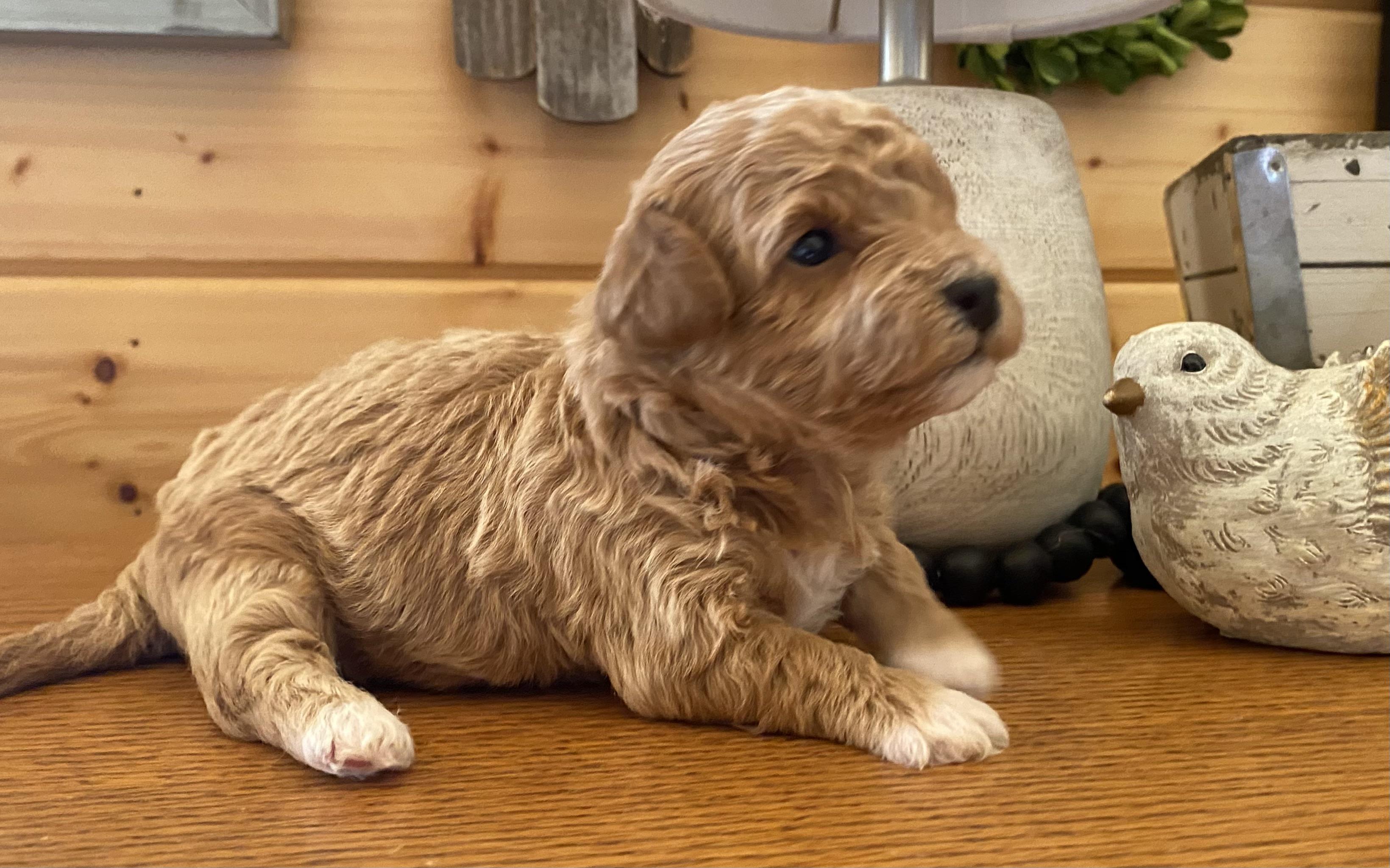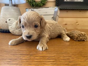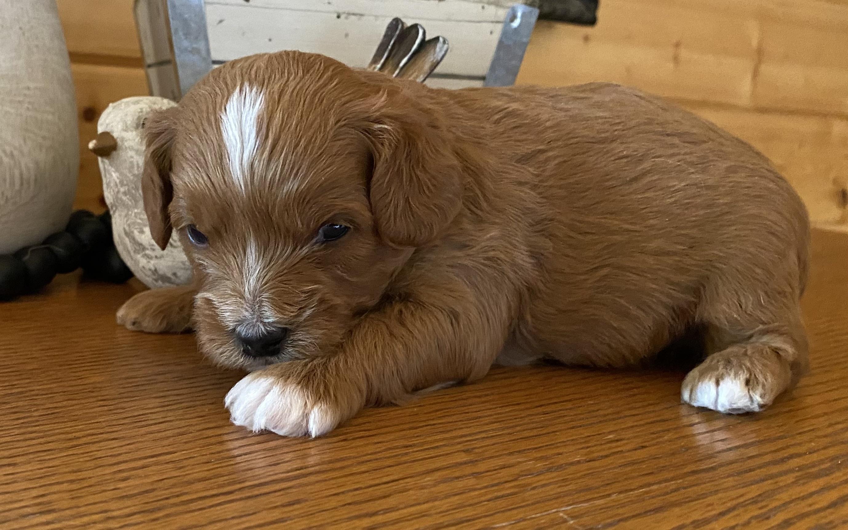 Our Cavapoo puppies include red, cream, and apricot. Colors will vary depending on the parent dogs.