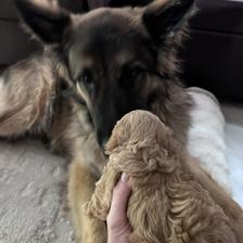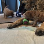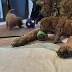 Villanelle has a big personality - she smiles, she cuddles, she plays hard with our cat (same size), she loves all people and she is incredibly smart. She is literally everyone's favorite! Villanelle has proven to be such a great mom - these puppies are so clean and comfortable; we are proud.