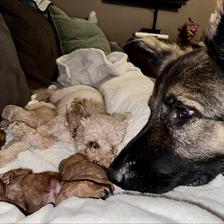 All the pups are playing now, and they recognize our voices when we enter the welping box area. Actually, today we started giving them run of the entire bathroom where their welping box is, and they'll play then retreat to the box for safe napping. They've been de-wormed (not that they needed it, but to be safe) and they're spending time with our German Shepherd - who is keeping watch regularly; he is def fond of these pups! They are all still quite small. Their Mama is extremely attentive and keeps them very clean. :)