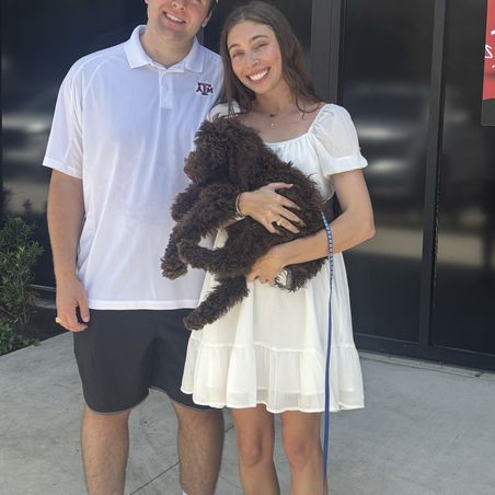 Rebecca was responsive and knowledgeable about her litter. I could tell from the beginning that she genuinely cares about her dogs and where they go. She FaceTimed with me, sent photos, and shared detailed info about the parents, which helped me feel confident every step of the way. She made sure the puppy had regular vet checks, his first round of vaccines, even started potty and kennel training, and provided helpful starter items. She truly went above and beyond, driving the puppy to College Station after my graduation, and she’s always happy to answer questions, even after pickup. She checked in to see how he was adjusting and shared her favorite apps to help with training and care. From our first conversation to the day I brought him home and beyond, Rebecca has been supportive, thoughtful, and professional. I’m so glad I found Chambers Doodle Patch. I couldn’t be happier with my sweet pup!