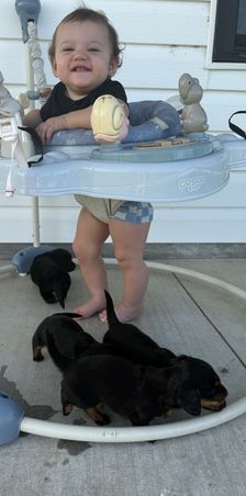 All the champion dachshund puppies are raised in our home along side our children and they are given all the love and cuddles one would need, they are also well acclimated to a little controlled chaos. ❤️