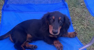 Theo is a male Dachshund. Carefully selected as a great representative of his breed, Trei decided to make him part of their program. Trei has passed Good Dog’s screening process, which involved a review of their breeding practices, environment, and the mental and physical health of their dogs.