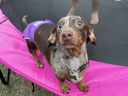 Martini is a female Dachshund. Carefully selected as a great representative of her breed, Courtney decided to make her part of their program. Courtney has passed Good Dog’s screening process, which involved a review of their breeding practices, environment, and the mental and physical health of their dogs.