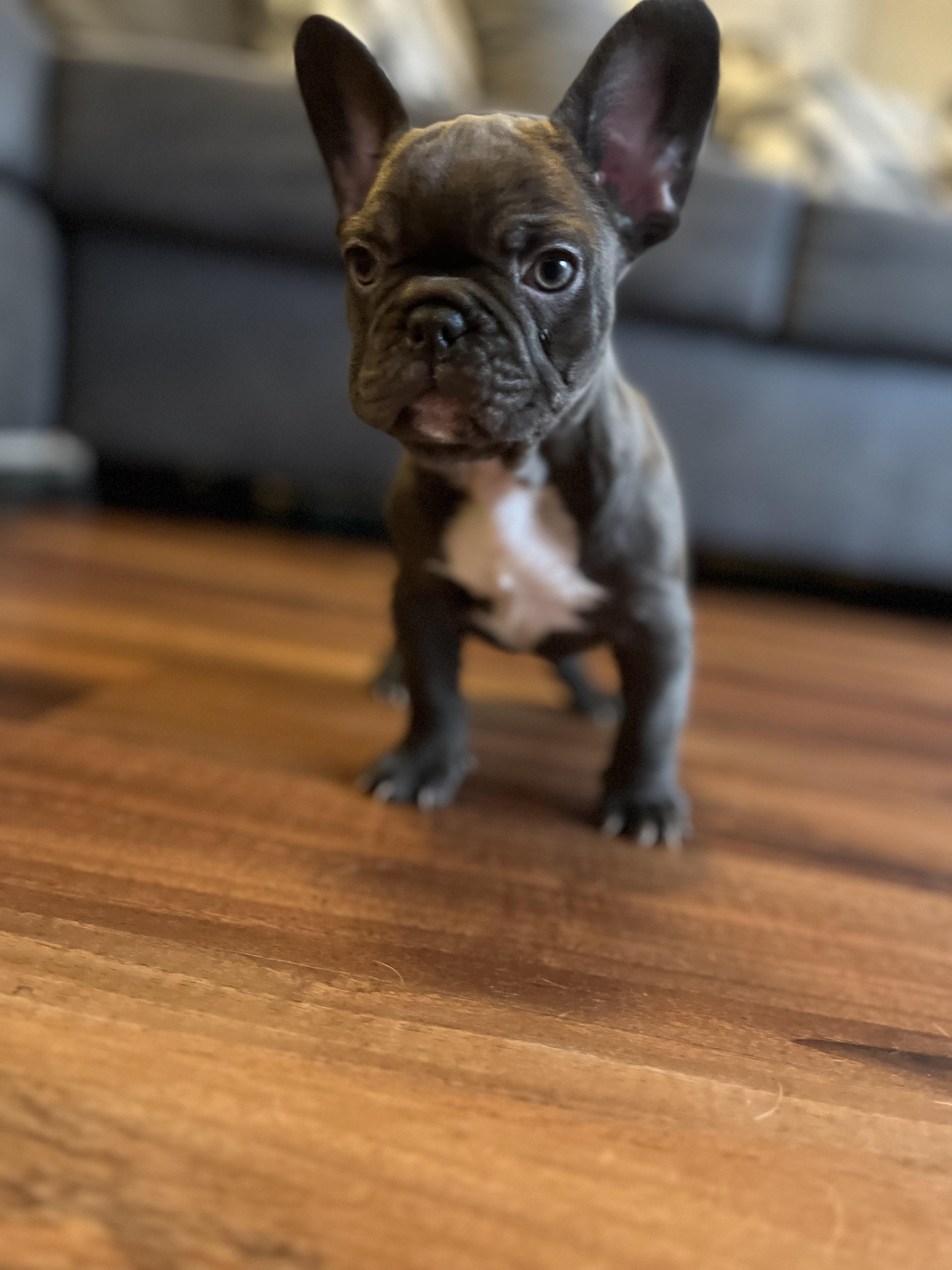 Schuster is a male French Bulldog. Carefully selected as a great representative of his breed, Patrice decided to make him part of their program. Patrice has passed Good Dog’s screening process, which involved a review of their breeding practices, environment, and the mental and physical health of their dogs.