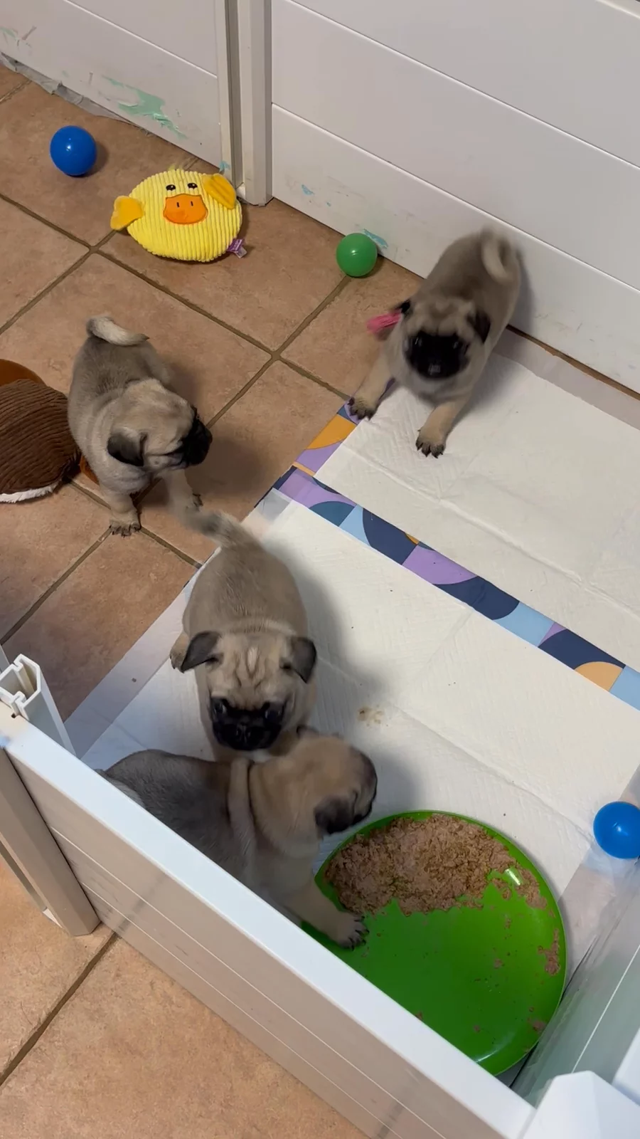 Here is Blue and Chantilly’s litter playing and eating in their pool while their whelping box gets cleaned. 🥰
