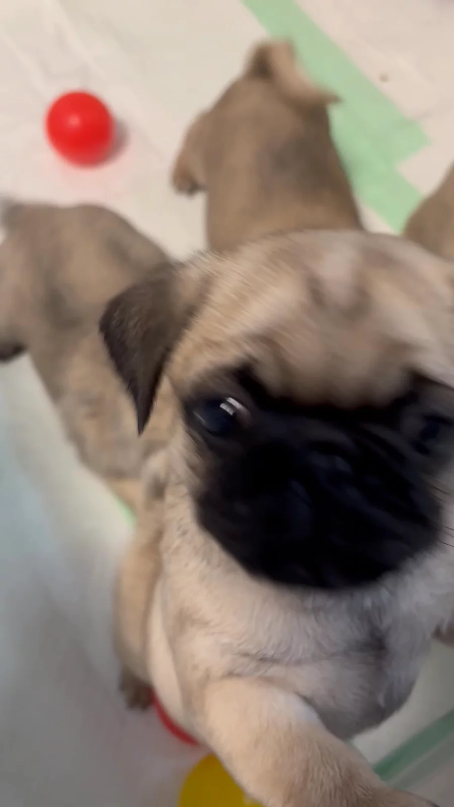 Sweet little pugkins next to a pugkin. 5 weeks and a few days, will be ready to go home, soon!