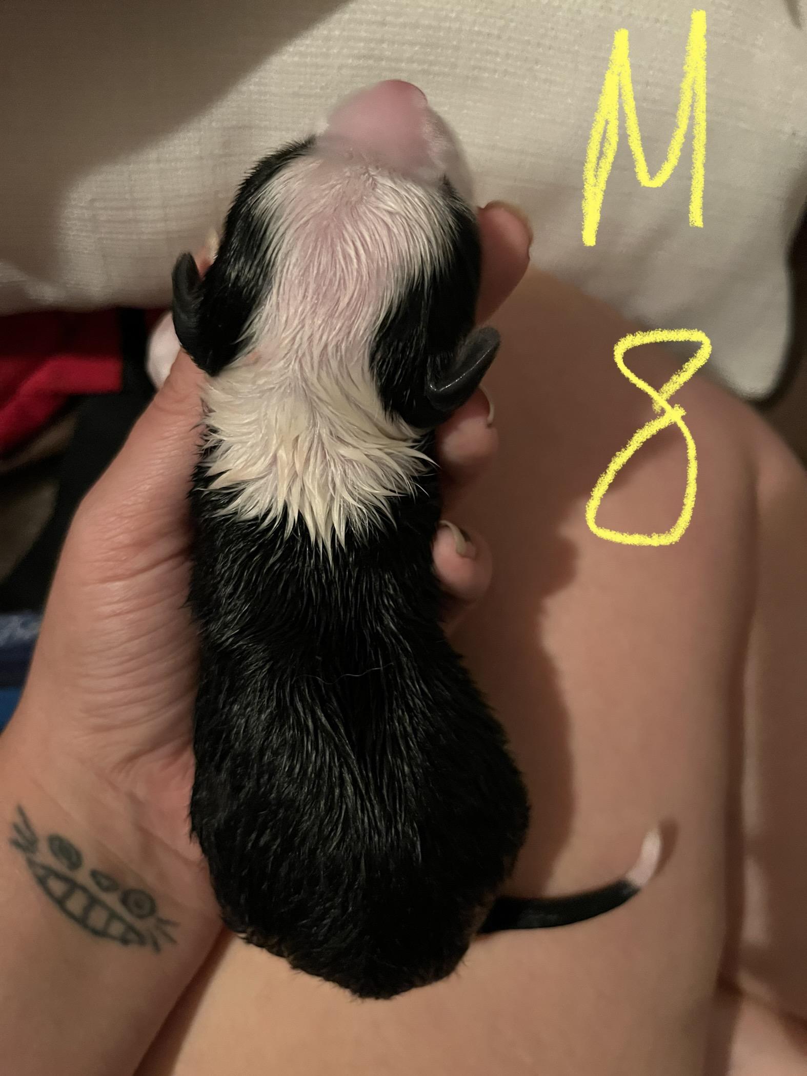 Eevie is a beautiful large Sable girl. Sweet happy girl and has surprised us with her first litter as an EXCELLENT mother. So sweet with them and attentive.