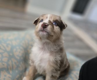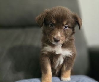 Brownie is a gentle natured, super chill Aussie. She gets compliments often on how great she is in high stress situations. She loves her momma and wants to be right with me everywhere I go. She is very even tempered. She enjoys car rides and going into the farm store. She enjoys adventures. Brownie is AKC and ASDR registered.