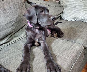 Lana is a female Great Dane. Carefully selected as a great representative of her breed, Dawn & Jon decided to make her part of their program. Dawn & Jon has passed Good Dog’s screening process, which involved a review of their breeding practices, environment, and the mental and physical health of their dogs.