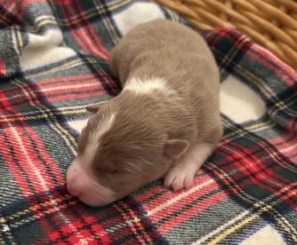 Our puppies include red merle and white and red. Colors will vary depending on the parent dogs.