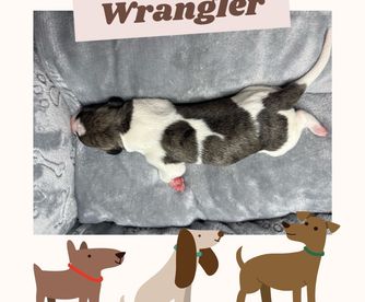 Our puppies include white and red brindle, white and fawn brindle, white and black, red brindle, fawn brindle, and black. Colors will vary depending on the parent dogs.