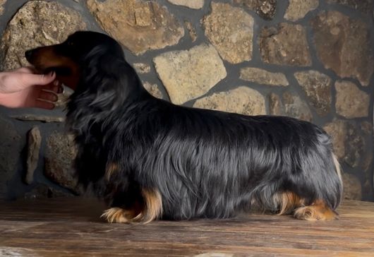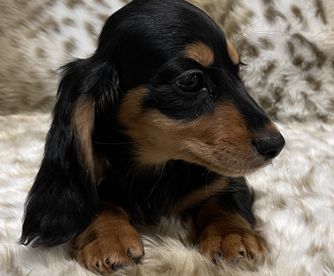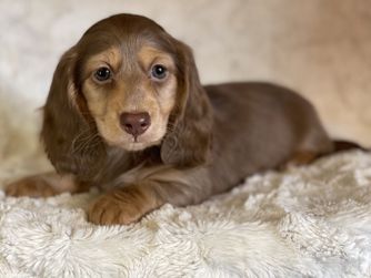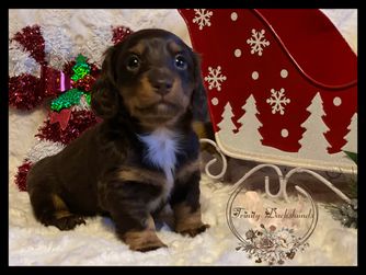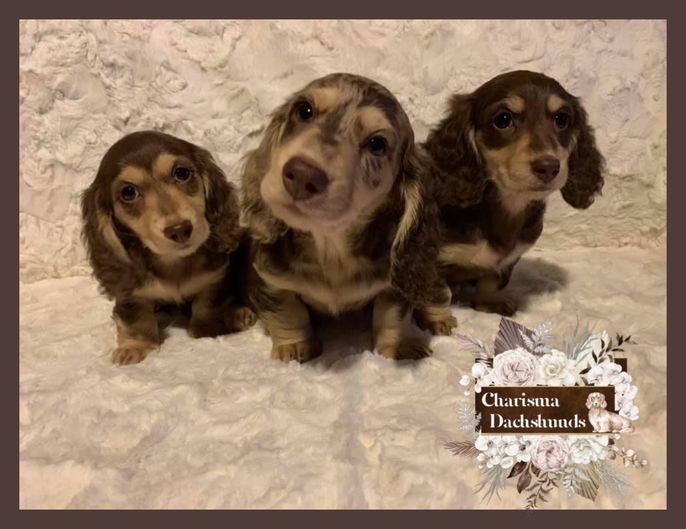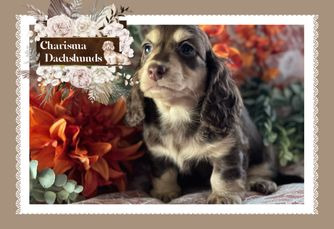 I'm Karen S., the breeder behind Charisma Dachshunds located in Mountainburg, AR. We are a small in home breeder of beautiful long coat dachshunds. Our goal is to have only one litter at a time so that we can place all of our focus on your puppies enrichment. We believe in quality over quantity, striving to produce puppies with desired temperaments and luscious coats.