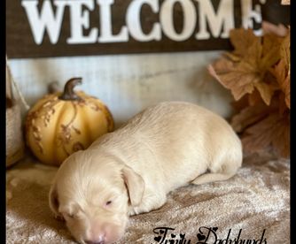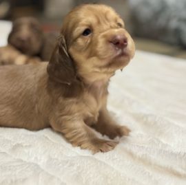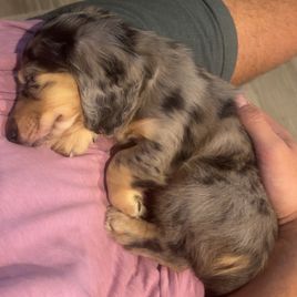 We recently brought home our miniature dachshund, Bodhi, from Karen, and we couldn’t be happier with the entire experience. From the very beginning, Karen was kind, professional, and incredibly knowledgeable about the breed. She took the time to answer all of our questions, provided updates as Bodhi grew, and clearly cared deeply about the health and happiness of her puppies. Bodhi came to us healthy, well-socialized, and full of personality—everything we could have hoped for in a new family member. It’s obvious that Karen raises her pups with so much love and attention, which truly shows in Bodhi’s sweet temperament. We are so grateful to Karen for bringing Bodhi into our lives, and we would highly recommend her to anyone looking for a miniature dachshund. She truly goes above and beyond to make sure her puppies are ready for their forever homes!