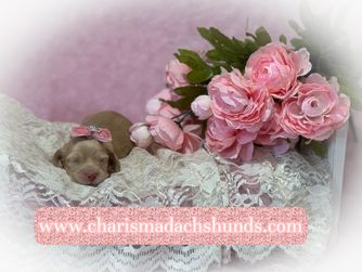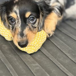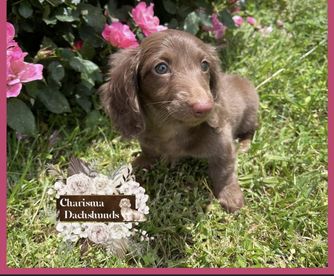Karen was amazing to work with! She was very responsive, friendly, and knowledgeable about dachshunds. You can tell she truly cares about her puppies and where they go. My puppy arrived healthy and happy through a flight nanny, and the whole experience went perfectly. I couldn’t be happier with my new mini dachshund Slinky, I highly recommend Charisma Dachshunds.
