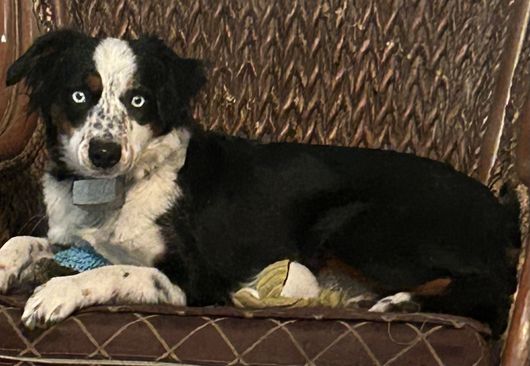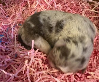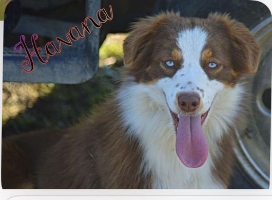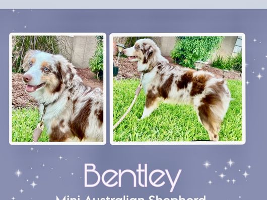 Bently is a gentle natured, loving Red Merle with Blue Eyes. Loves children and car rides. Bently has championship parent and amazing personality. This personality matches his markings.