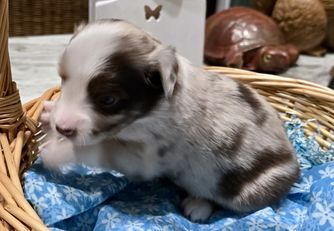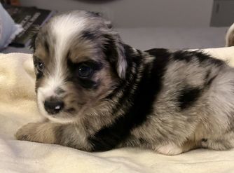 Our puppies include blue merle, black tri, red tri, and red merle. Colors will vary depending on the parent dogs.