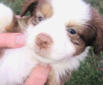 Bindee is a living red tri with brilliant blue eyes. Sweet living girl that never leaves your side.