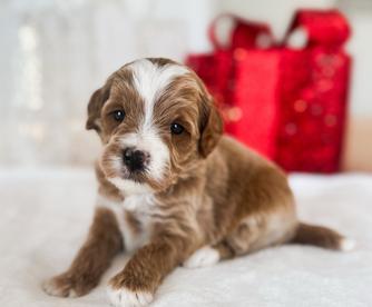 All of our dogs are genetically health tested through Embark and live in our home or in guardian homes. We perform handling exercises and exposure activities with the puppies. We do extensive crate and potty training so that our puppies come home sleeping all night in their crates and going potty on artificial grass nearly 100% of the time! Our puppies are raised in our home and given full-time care and love from our family. They are not only healthy but all our puppies have a non shedding, loose wavy coat that is gorgeous!