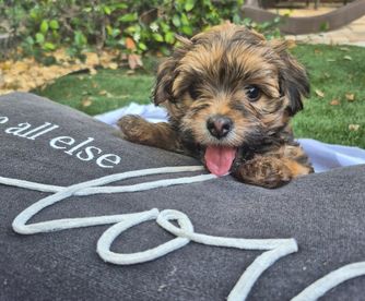 Sonya was wonderful to work with and our new little one settled right in at home! She was already crate and potty trained and it has been so easy so far with our new puppy! She’s very smart and already knows several commands and she’s also just a very happy well rounded puppy! She has no separation anxiety and overall has a great temperament. Don’t hesitate to work with Sonya for your new baby!!