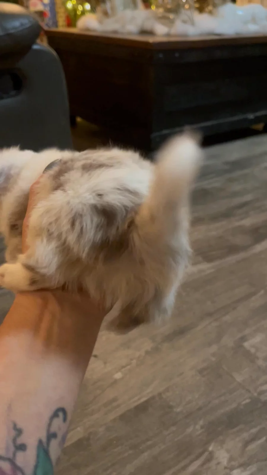 Asher is our new up and coming Stud and boy is he good at his job, he definently loves the Ladies. He is a tiny, only 4 lbs, long coat blue tri Male who absolutely loves everyone.