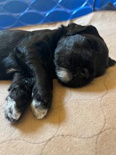 Our puppies are black and white. Colors will vary depending on the parent dogs.