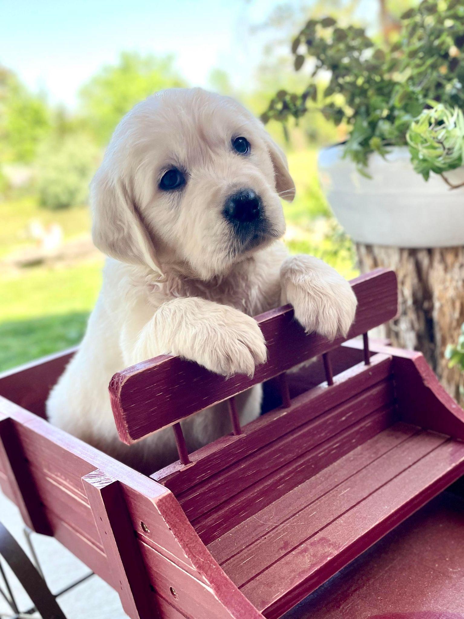 We adopted our 1st English Cream Golden in 2012. His father was from the Netherlands. In 2013 we purchased our 1st female English Cream Golden from Poland. Through the years we kept a few females back from their litters. In 2019 we purchased our male Chase & became good friends with his Breeder. Through that relationship we have been able to use some of her amazing studs, Traveler & Taz.