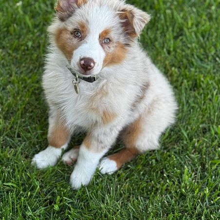 Our Australian Shepherd puppies include red merle, blue merle, black tri-color, and red tri-color. Colors will vary depending on the parent dogs.