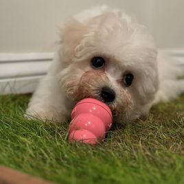 If you look up the word "spitfire" in the dictionary, Annabelle's picture would be next to it! She is hilarious and an absolute joy to have around. Just like all of my Bichons, she is SUPER cuddly and lovey!! She is halfway to earning her Championship title and we are excited to get back out into the ring!