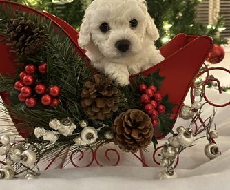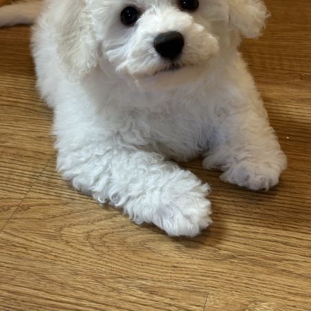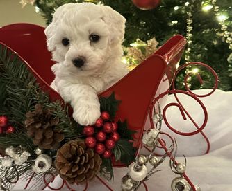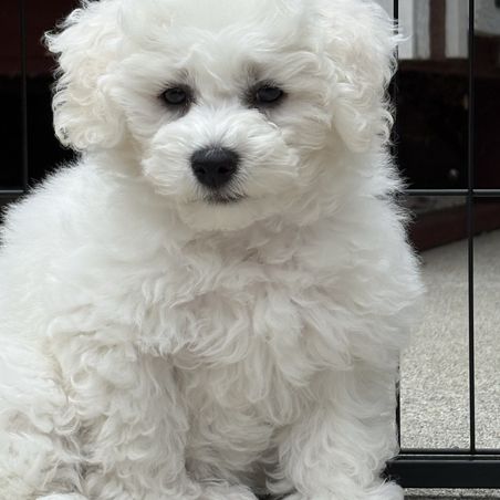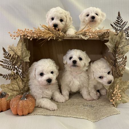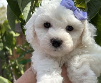 Beautiful Bichon’s Frise puppies looking for a loving home. 9 weeks old! Vet check, dewormed, and 1st set of shots completed