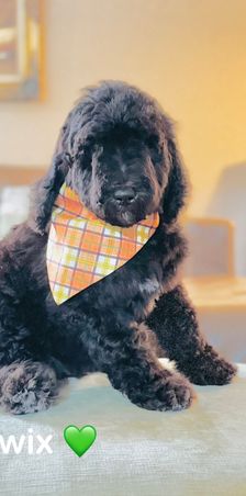 Hopeful Future Mom! Phoebe is a Medium Multi-Gen Goldendoodle born from Calliope and Finnick. Currently awaiting age and complete health testing. CKC Registered.