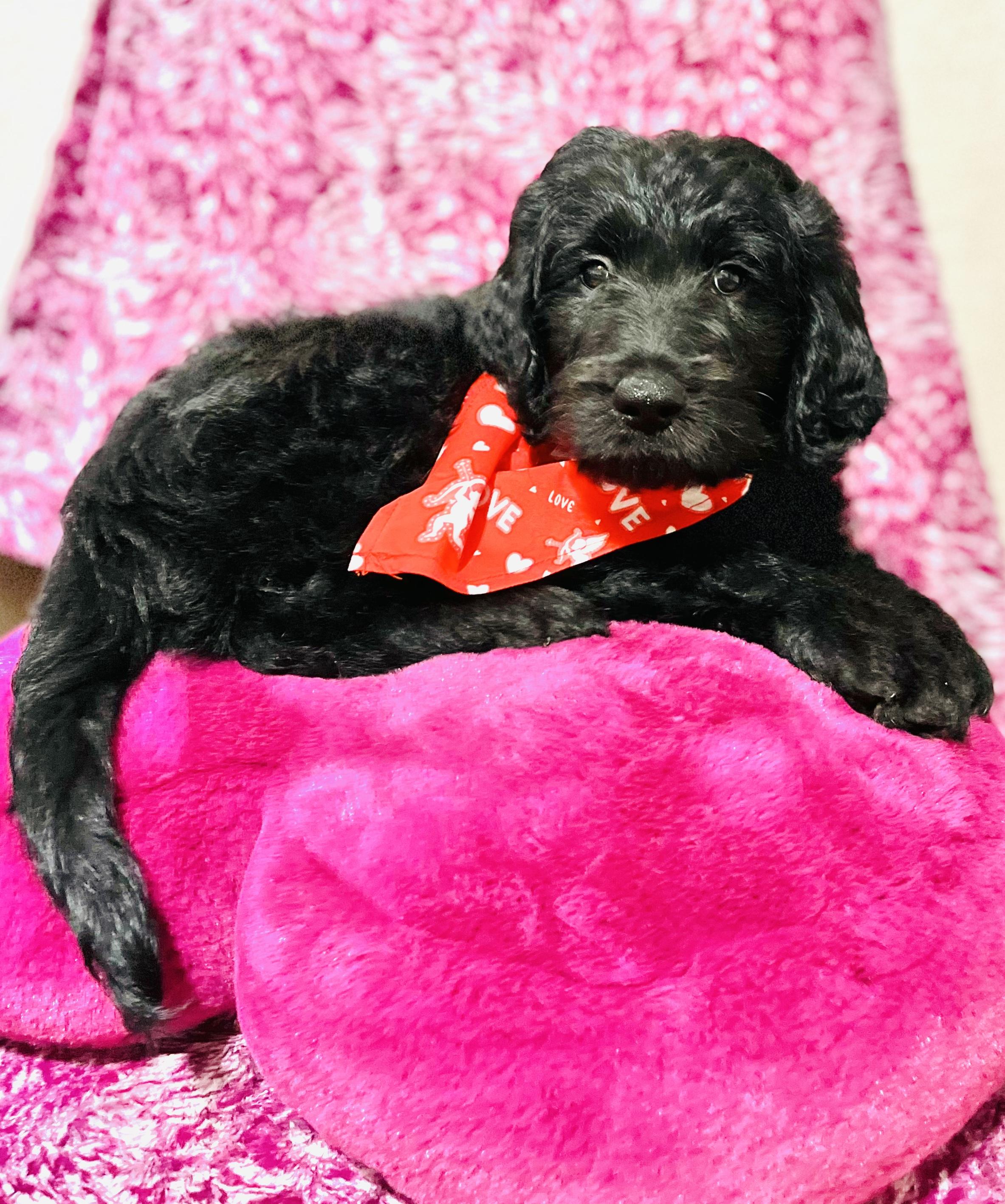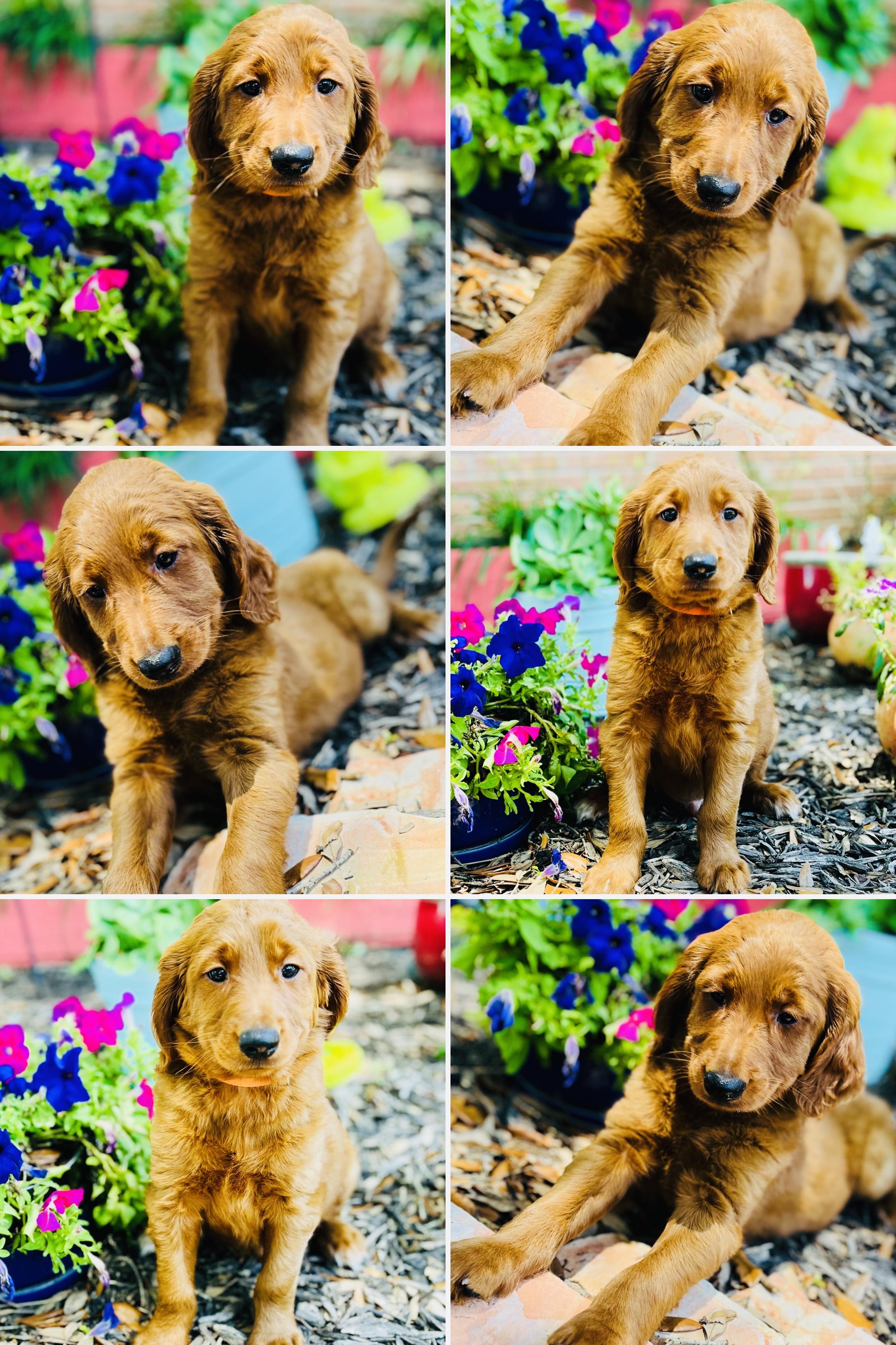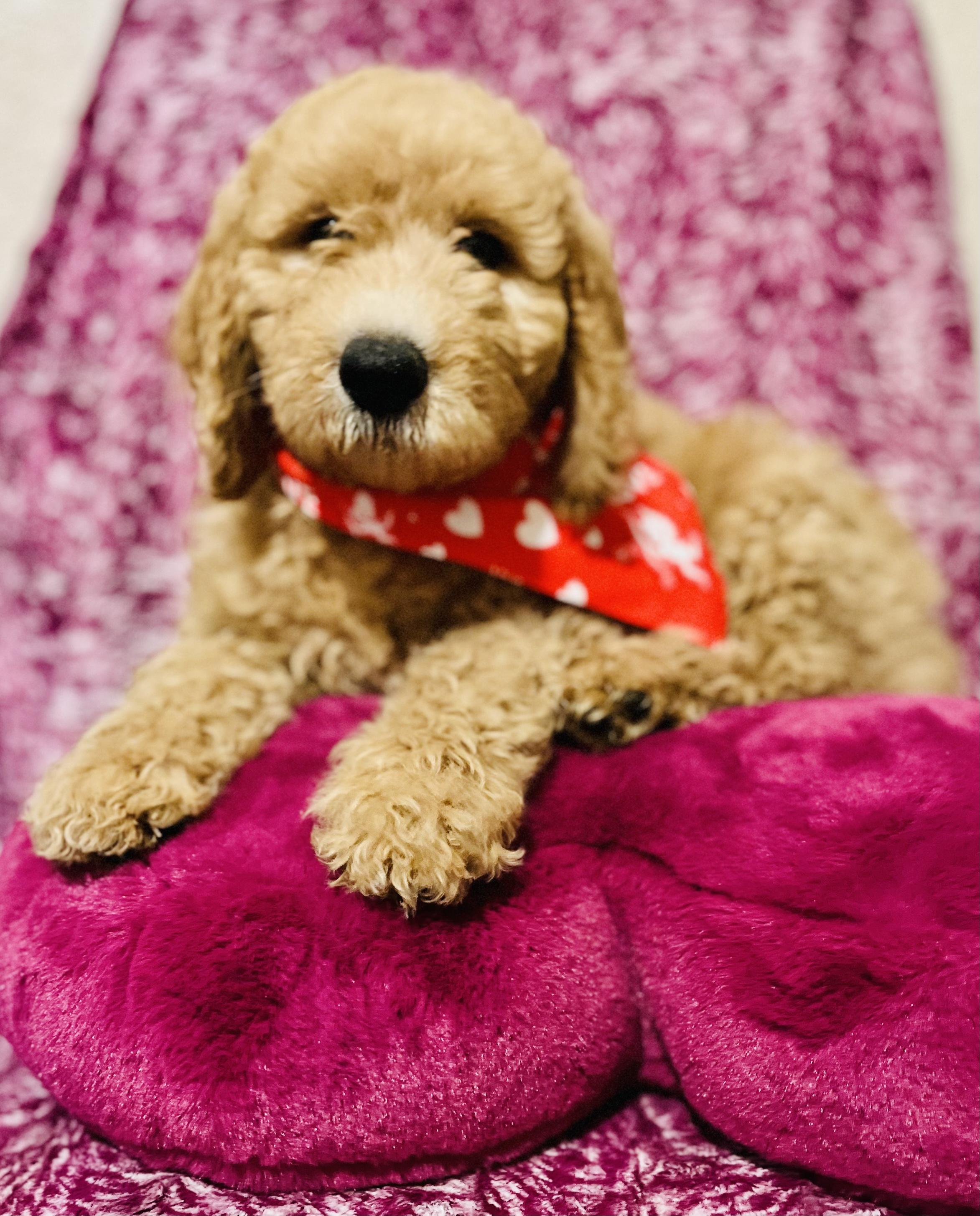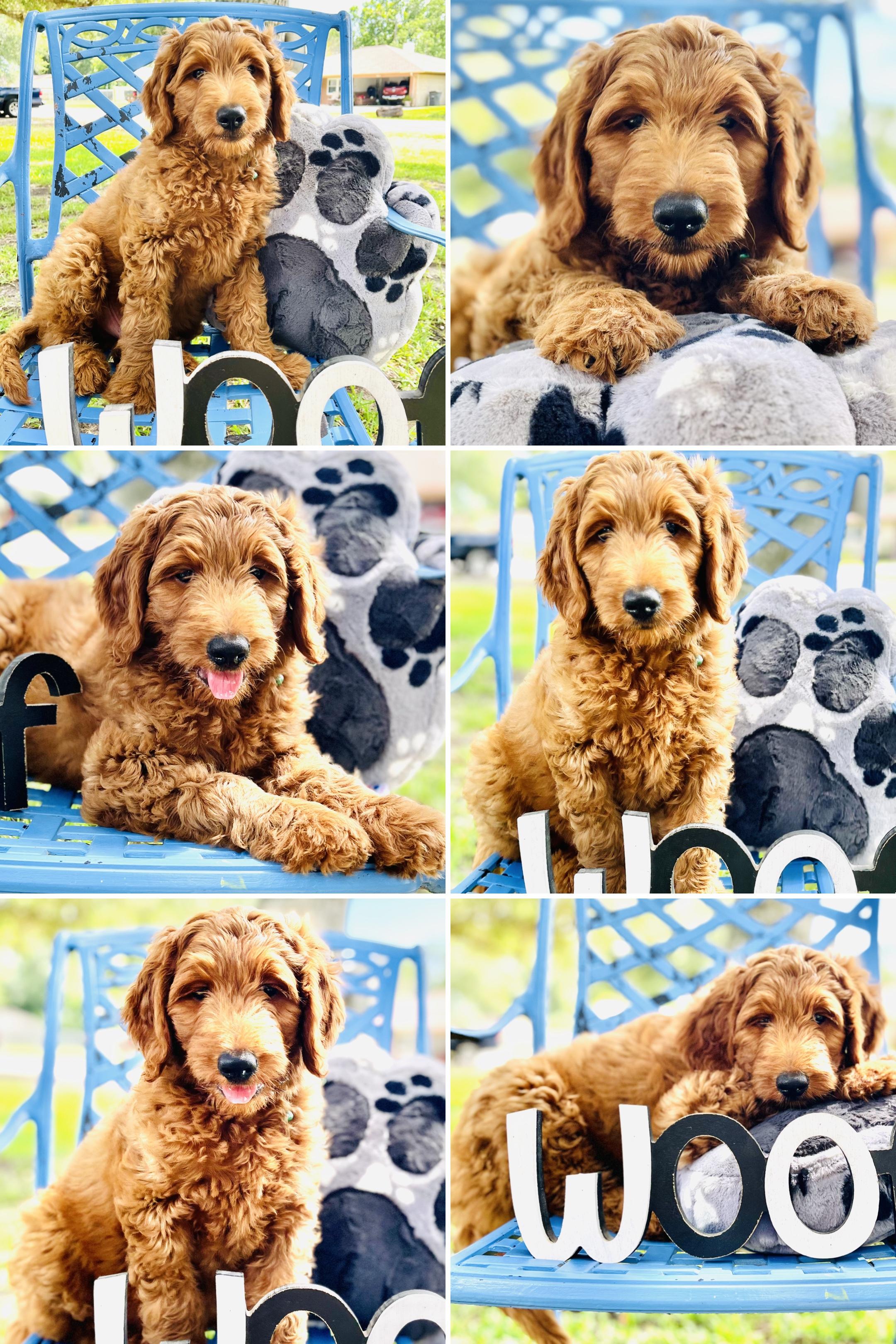 You will choose your puppy at 6 weeks of age, we go in order that the deposits are received. Because Goldendoodles change so much as they grow, we wait until they are 6 weeks old to give you a better idea of hair color and type as well as temperament and personality. We like to make sure everyone gets their perfect match and is happy with their choice!”
