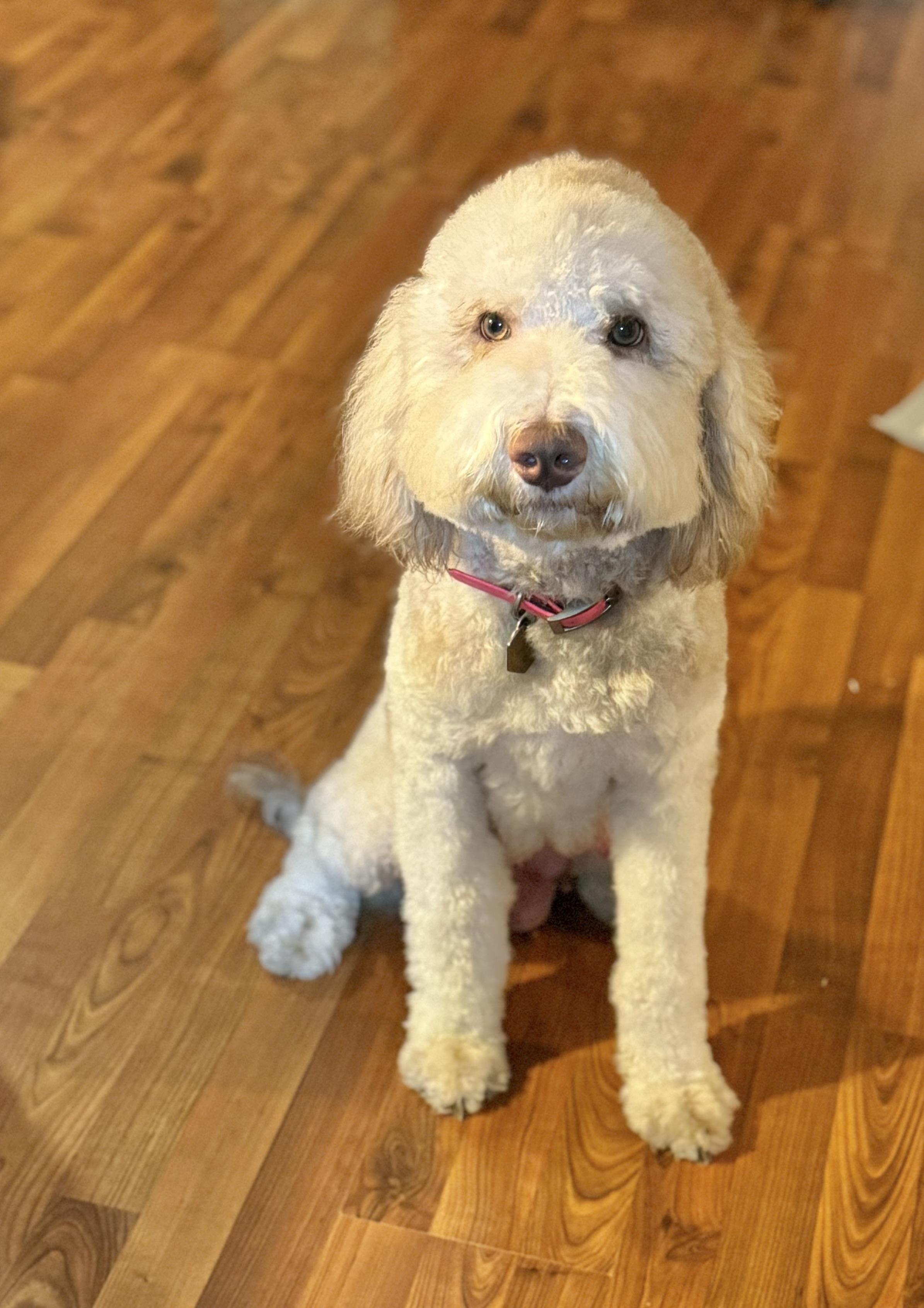 Hopeful Future Mom! Phoebe is a Medium Multi-Gen Goldendoodle born from Calliope and Finnick. Currently awaiting age and complete health testing. CKC Registered.