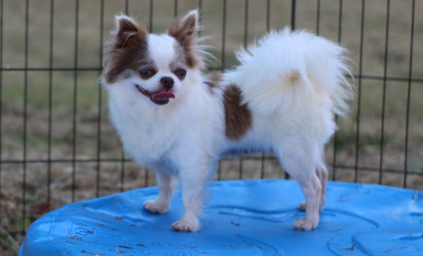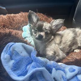 Gypsy is a gorgeous,long coat, apple head, blue tri chihuahua. She is completely health tested and CHIC certified. She loves everyone, especially my husband.