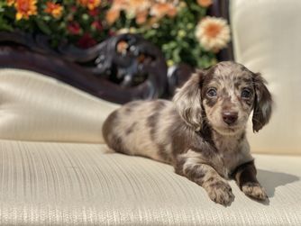 Our Dachshund puppies include smooth and longhaired coat varieties. Coat types may vary depending on the parent dogs.