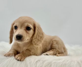 Our Dachshund puppies include sable, cream, red, black, chocolate, chocolate and tan, chocolate and cream, black and cream, and dapple. Golden Retriever puppies are light golden. Colors will vary depending on the parent dogs.